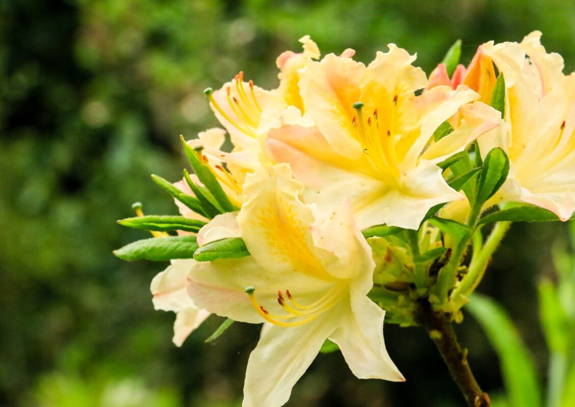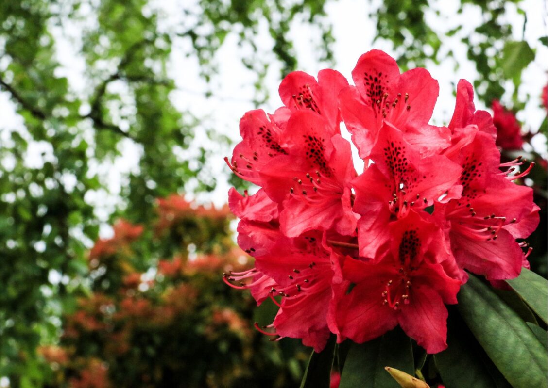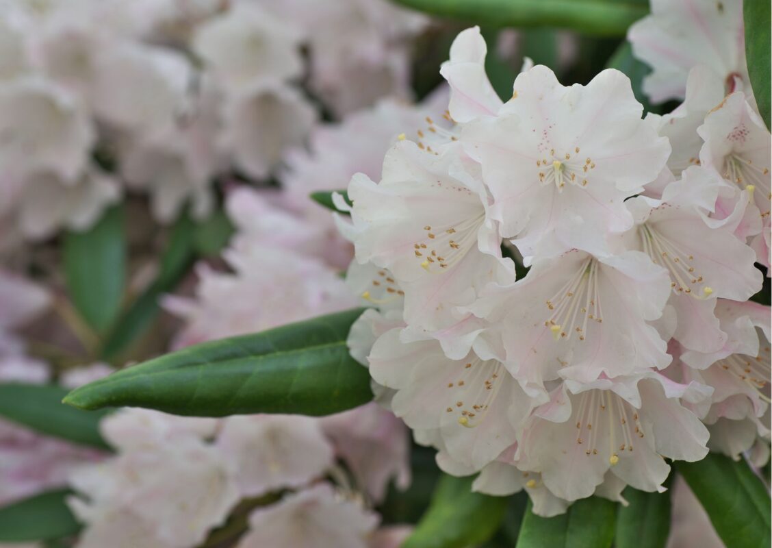 Las azaleas también pertenecen al género Rhododendron. En general, las azaleas suelen tener hojas más pequeñas. Muchas azaleas son caducifolias. Las flores de azalea suelen ser más pequeñas pero muy abundantes.